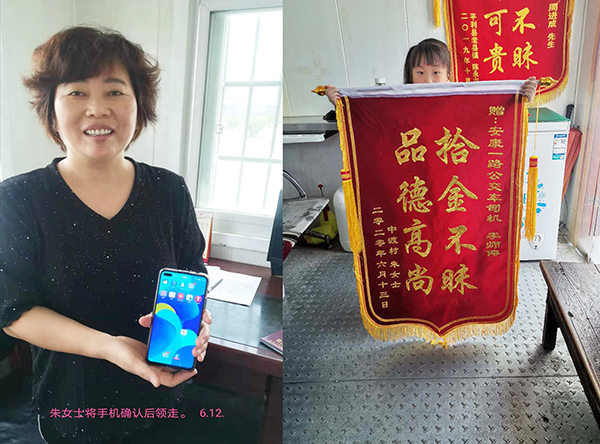 “感謝你,李師傅,要不是你,我的手機可能真的就找不到了......”6月13日,朱女士攜帶一面“拾金不昧 品德高尚”的錦旗,送至市公交公司火車站調(diào)度室,見到駕駛員李飛時連忙道謝。